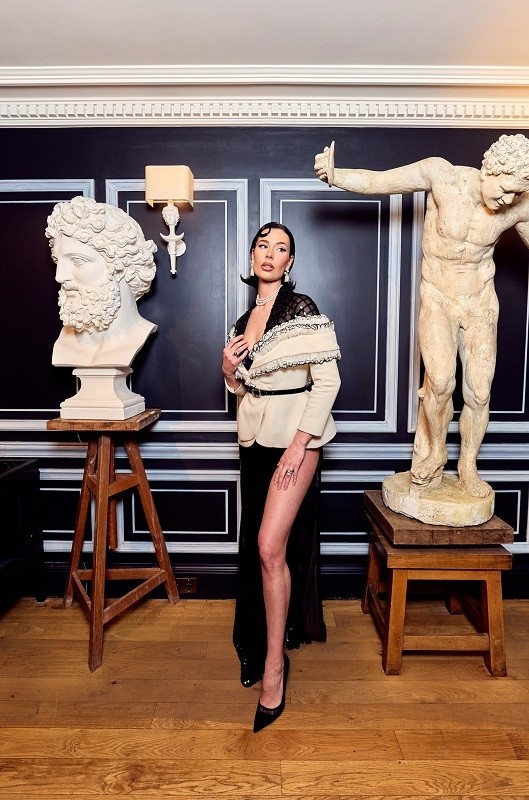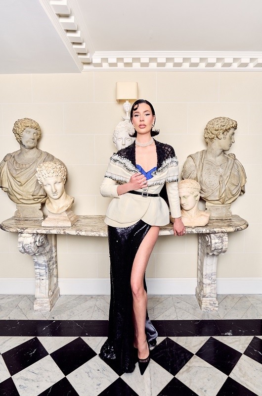 在巴黎 Hotel De Berri 的古典艺术氛围中,雕塑的冷峻线条与时装的柔性廓形形成鲜明对话。大理石的静默与光影流转间,LiuliSiParis 的礼服宛若从古典神话中走出,却带着当代女性的独立气场。力量与优雅在空间中交融,仿佛一场关于“永恒与瞬间”的艺术对谈。