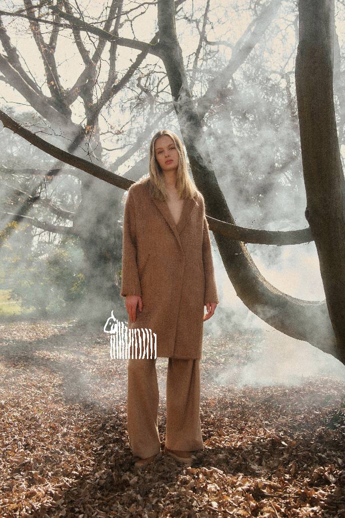 在COLOMBO 2025秋冬系列当中,不仅延续着一贯对于自然美学和贵族纤维的极致追求,更通过对工艺的创新升级赋予面料前所未有的感官体验和艺术表现力。在主系列当中,COLOMBO首次将标志性的“重磅紫貂工艺”进行全面升级。赋予其创始的双面羊绒如古玉般温润的“水波纹”光泽,呈现传承隽永而纯粹的奢侈格调。而在驼绒、马海毛与初剪羊毛的质感交错中,COLOMBO更将这一工艺进行升级,以动态水波纹呈现紫貂皮般的立绒效果,描摹冬日Valsesia山谷中狐狸掠过雪地的灵动之迹。
