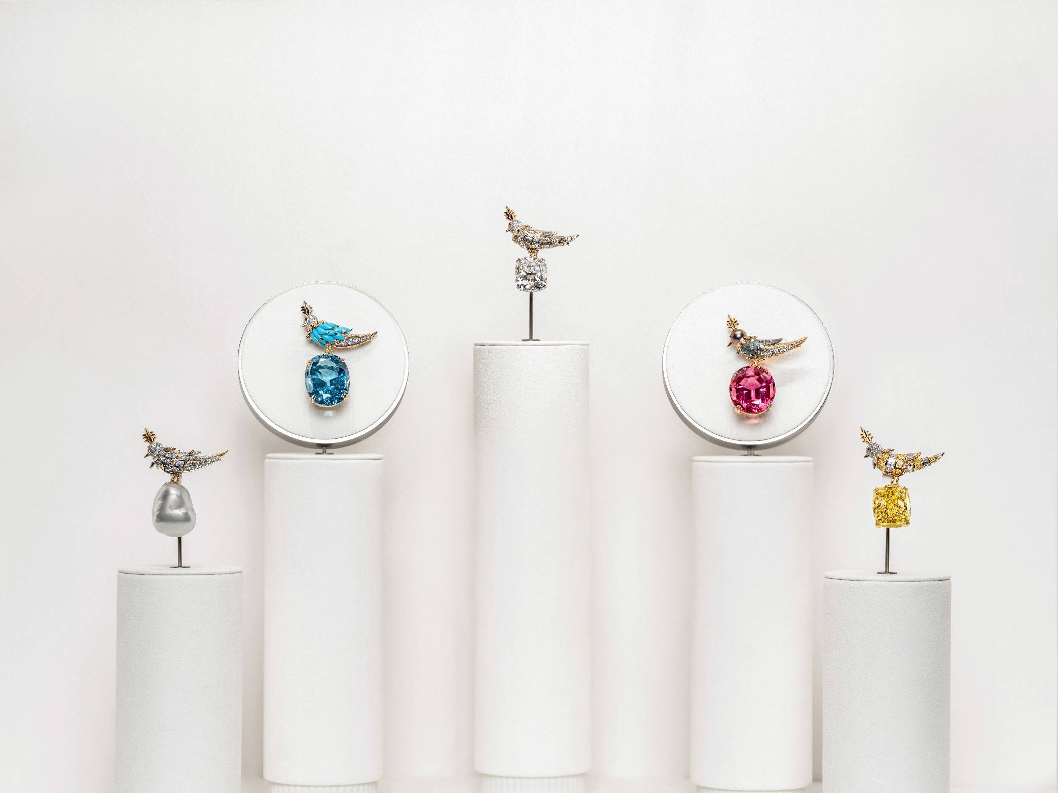 除2025 Blue Book高级珠宝系列外,蒂芙尼于现场特别设置让·史隆伯杰经典作品空间。今年恰逢标志性“石上鸟”胸针问世六十周年,一系列独特的Rainbow Bird on a Rock彩虹“石上鸟”胸针亮相现场,以缤纷宝石和多元材质诠释经典设计,赞颂让·史隆伯杰妙趣横生的创意精神,以及蒂芙尼深厚悠远的艺术匠心。