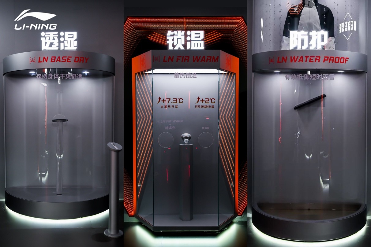 活动现场,李宁打造可供消费者体验试穿的全新棉羽系列新品试衣间,从专业健身、户外运动,到篮球、跑步、训练,再到日常通勤多场景覆盖,为消费者提供从生活到运动场景中的全方位“暖”保障。这一全场景产品矩阵的背后,是 “李宁航天动态保暖科技平台”的系统性支撑。