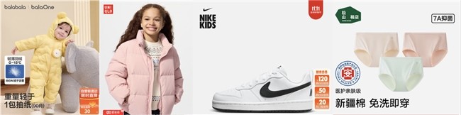 童装、内衣品类也集结多款明星单品,温暖守护你的冬季。巴拉巴拉儿童轻薄羽绒服,亲肤萌趣,限时8.5折;优衣库儿童蓬松羽绒夹克,搭载高机能御寒科技,轻盈锁温;耐克低帮Dunk大童鞋,经典外观结合缓震设计;松山棉店新疆棉抗菌内裤,洁净即穿,呵护敏感肌,享1件5折。