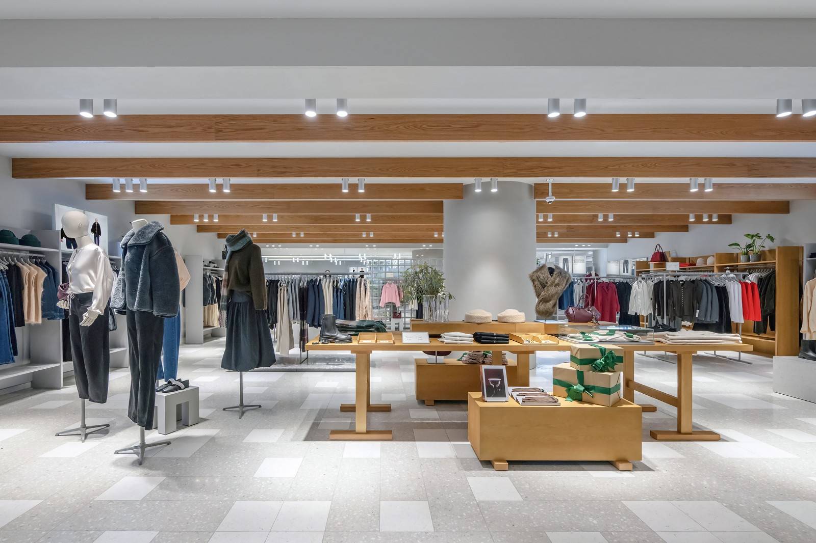 ARKET全新旗舰店占地面积接近500平方米,整体呈现出ARKET标志性的单色色调,以柔和的灰色系和多种天然材质为主,包括定制水磨石地面、橡木内饰与繁茂的绿植。