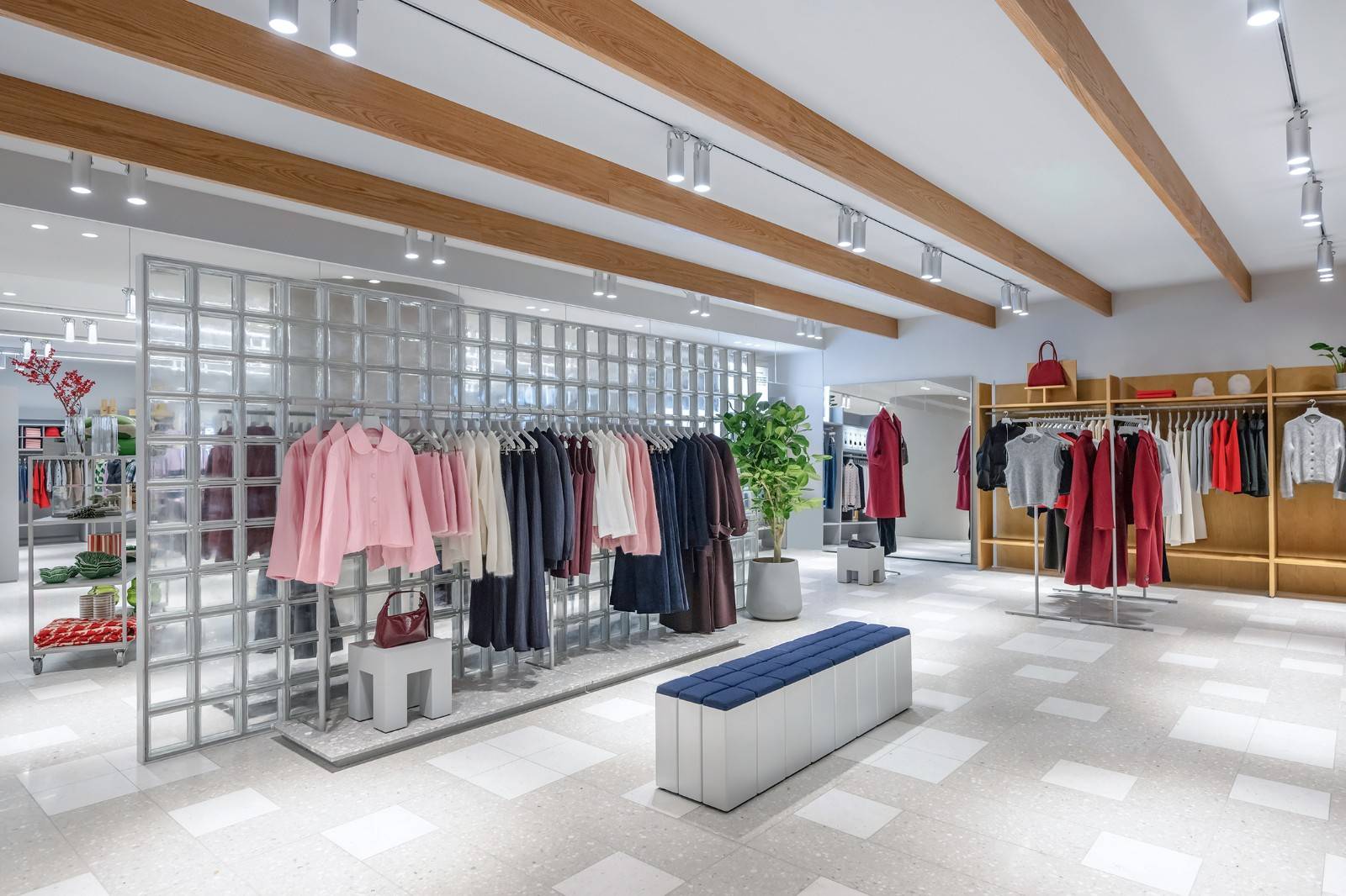 为致敬中国工艺,ARKET在全新旗舰店独家呈现Rectangle系列精选单品。该系列精致独特的家具设计与店铺内部空间及网格状地面纹理相得益彰, 也为试衣间的座椅区域增添一丝优雅气息。