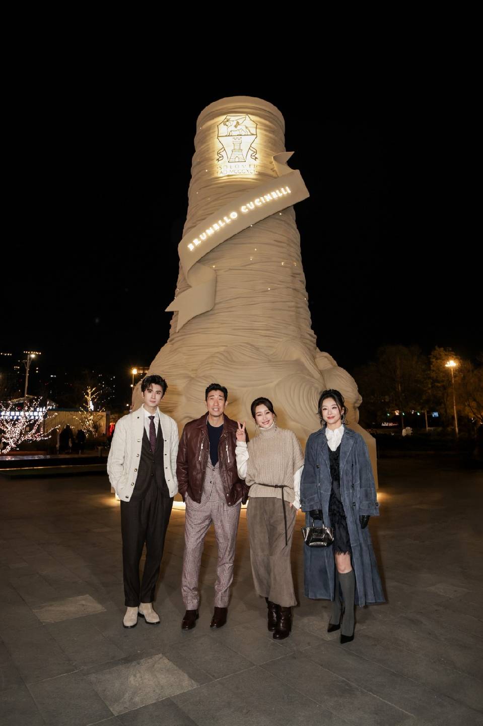 星启羊绒,点亮北域冬夜。意大利高级时装屋品牌Brunello Cucinelli于沈阳万象城举办「博绒诺意星光盛典」。苍穹之下,演员秦海璐、王千源、袁姗姗、张云龙与时装屋的朋友们由星点引路行至盛典广场,共同见证羊绒圣境的臻启。在全场宾客的倒数中,广场中央“羊绒圣诞树”上的狮鹫徽章与品牌绶带亮起璀璨光彩,绒线里包裹的索罗梅奥人文暖意,渐入沈阳的冬日长夜。