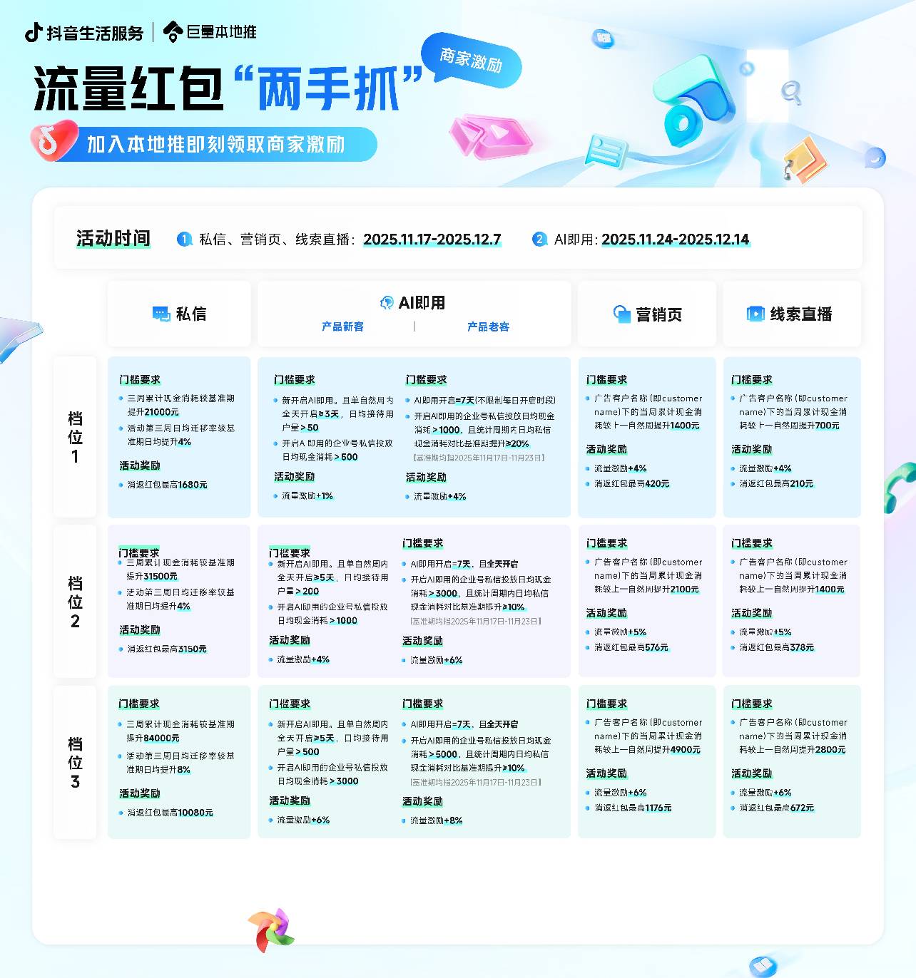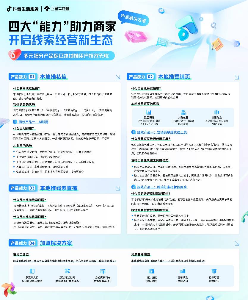 2025 年,线索生意的新机遇已经到来,巨量本地推正以更完善的功能、更丰厚的福利、更严谨的产品逻辑,陪伴本地商家告别增长困境,在精细化运营的浪潮中,稳稳抓住每一份确定性的增量,从而实现生意的可持续增长与盈利升级。