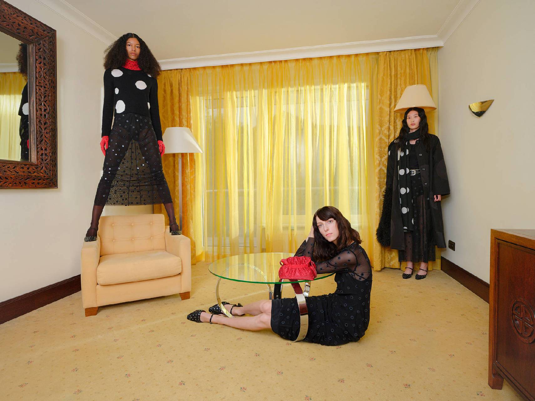 对比元素以恰到好处的方式碰撞,形成一种流动的美学:松弛与精致并存,内敛与大胆交织,优雅与玩趣共生。通透薄纱、花卉印花、柔和粉彩、精致褶裥与柔软量感,邂逅利落剪裁、90年代复古风、箱型轮廓、工装元素与运动细节。比例的游戏与意想不到的色彩迸发,构成了本系列的情绪核心。