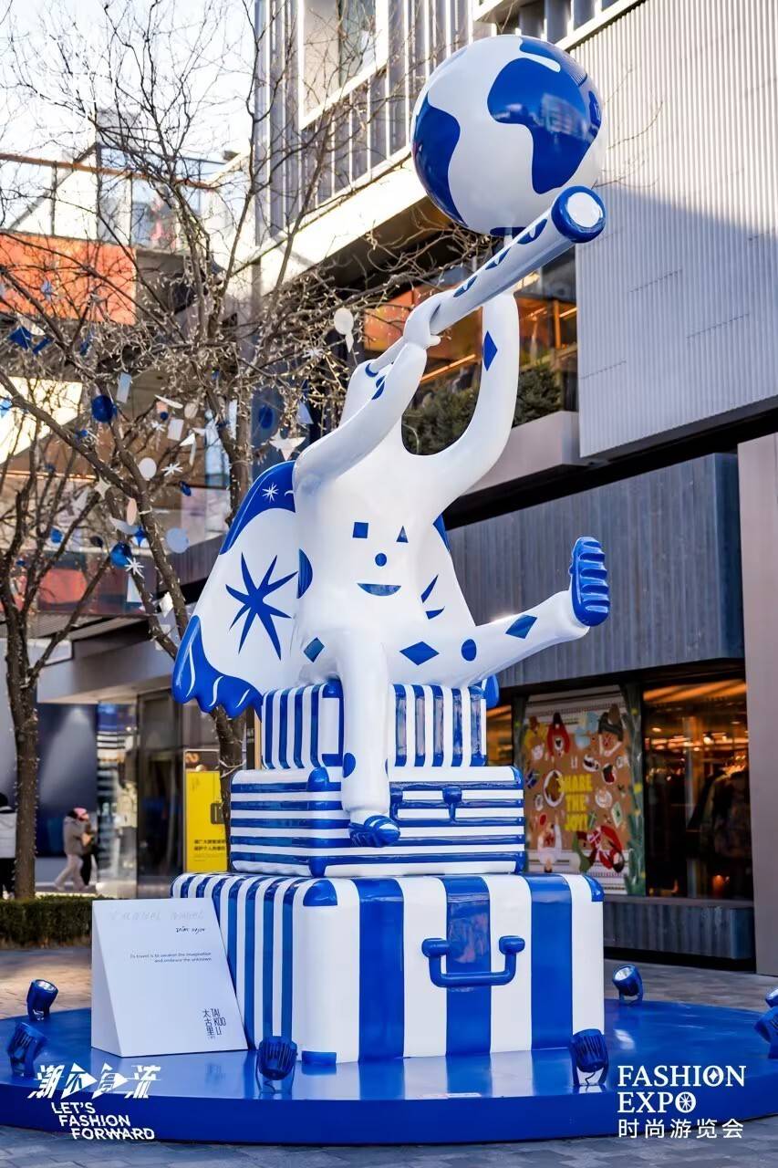 值此焕新衍变之际,Jaime Hayon——被《时代周刊》评为“全球最具影响力的设计创作者”之一,并屡获《Wallpaper*》等国际顶级设计大奖的艺术家,受三里屯太古里特别活动【Fashion Expo时尚游览会】启发,以奇幻妙趣的风格,将青花瓷色调的东方美学作为设计灵感,为三里屯太古里独家打造标志性艺术雕塑「Travel Angel」——以“旅行与时尚精神”为起点,无论是手托地球立于旅行箱上,还是透过望远镜探索,仿佛都是来自异想世界的观察家,连接无限的可能性,邀请各路潮人探索焕新衍变的开放式街区的种种体验、故事与能量。