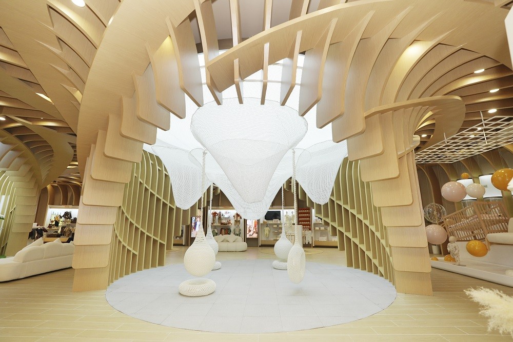 未来衣橱区是用天然木材构建的治愈空间,述说着好孩子对自然的敬畏和环保的实在行动。在每个木制穹顶下,各类主题的童趣故事正生动演绎着,分分钟勾起孩子的探索欲,如飞翔的树叶、魔法世界、银河冒险、好奇学院等。