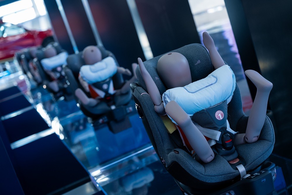 当全场闪光灯聚焦于“时光隧道”动态装置,一部打开慢动作特效的科技大片正精彩上演。汽车高速行驶发生碰撞后,好孩子智能气囊安全座椅毫秒级响应并自主决策,对严重事故即刻启动气囊防护:0ms时刻,碰撞刚刚发生;15-20ms,ECU气囊控制器发出点火信号,30ms气囊完全充满;45-50ms,充满气的气囊与孩子头部相遇,对孩子头颈形成有力支撑;80ms-100ms,气囊变形到最大程度,孩子头部运动到最前位置;100-200ms,孩子安全无恙,碰撞过程结束。原本晦涩的安全专业知识,通过沉浸式动态呈现秒变直观感知,让追求育儿生活品质的年轻父母一眼看懂科技守护的硬核与酷炫——有气囊,更安全!