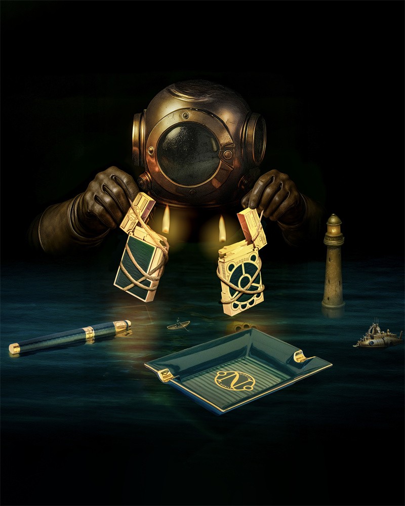 海底两万里限量系列显赫版打火机套装作为该系列的启程之作,以尼摩船长的座驾 “鹦鹉螺号”为核心灵感,成就可被典藏的微型艺术圣殿。该套装包含:Le Grand格兰德系列打火机、主题火机支架、“鹦鹉螺号”潜水艇模型摆件及专属典藏礼盒,全球限量180套。