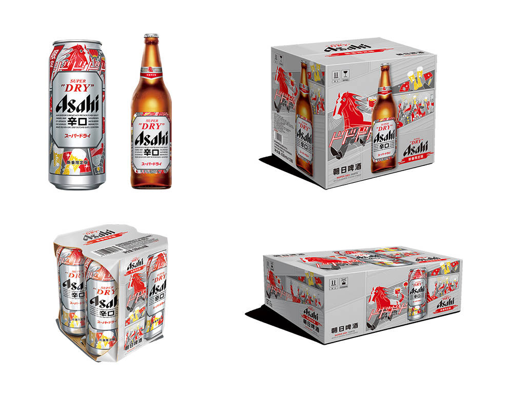 图:不同规格的新春限量版包装朝日超爽啤酒展示