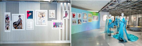 本届设计周将“国际著名院校时装画邀请展”与“中国服装设计作品邀请展”并联呈现。让观众可在同一空间内欣赏国际青年设计师的灵感雏形,以及中国原创成衣的现实表达。这种 “二维构想 — 三维实现” 的对照展示,直观揭示时尚设计全流程,为学术研究与产业实践搭建高效对话通道。展览深度融入“非遗×科技×公益”核心理念,多幅作品巧用苗绣、苏绣、蜡染等传统工艺元素,经抽象化处理、数字重构等方式赋予当代语境。