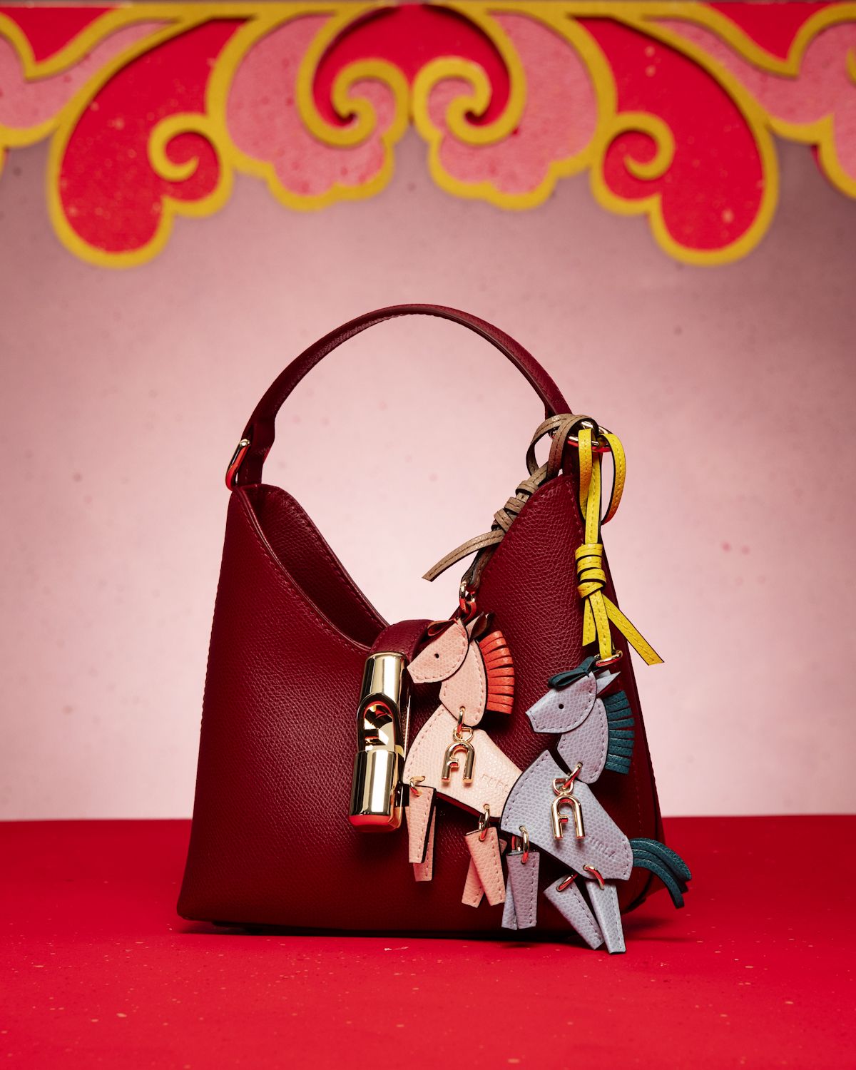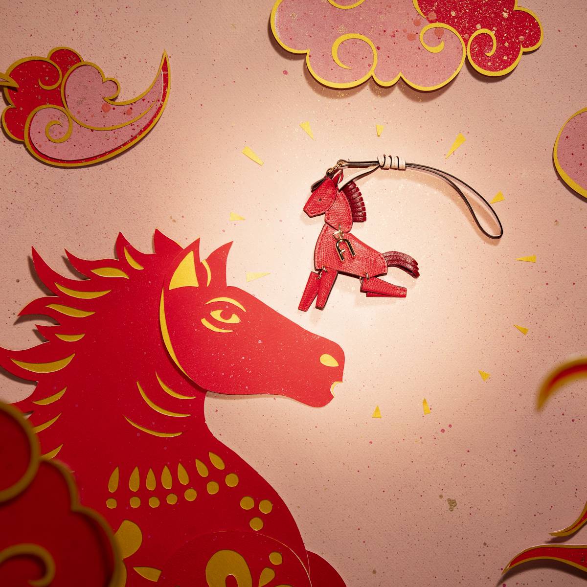 为庆祝中国农历春节的到来, FURLA以“灯笼跃马”为创意通过视觉艺术将传统节庆符号与时尚设计巧妙串联,一只灵动的皮革小马,优雅跃于IRIDE手袋之上。不仅致敬了马年的祥瑞寓意,更象征着节庆喜悦与时尚单品的完美融合。