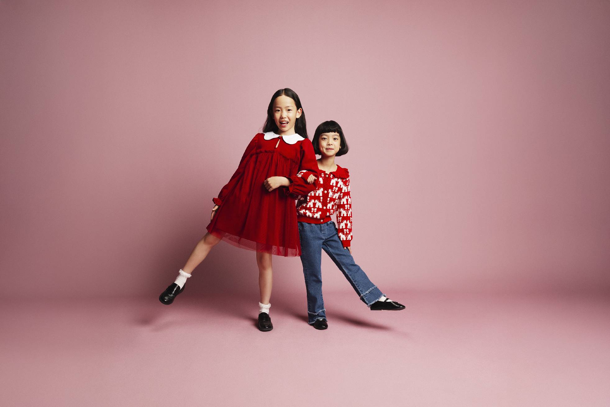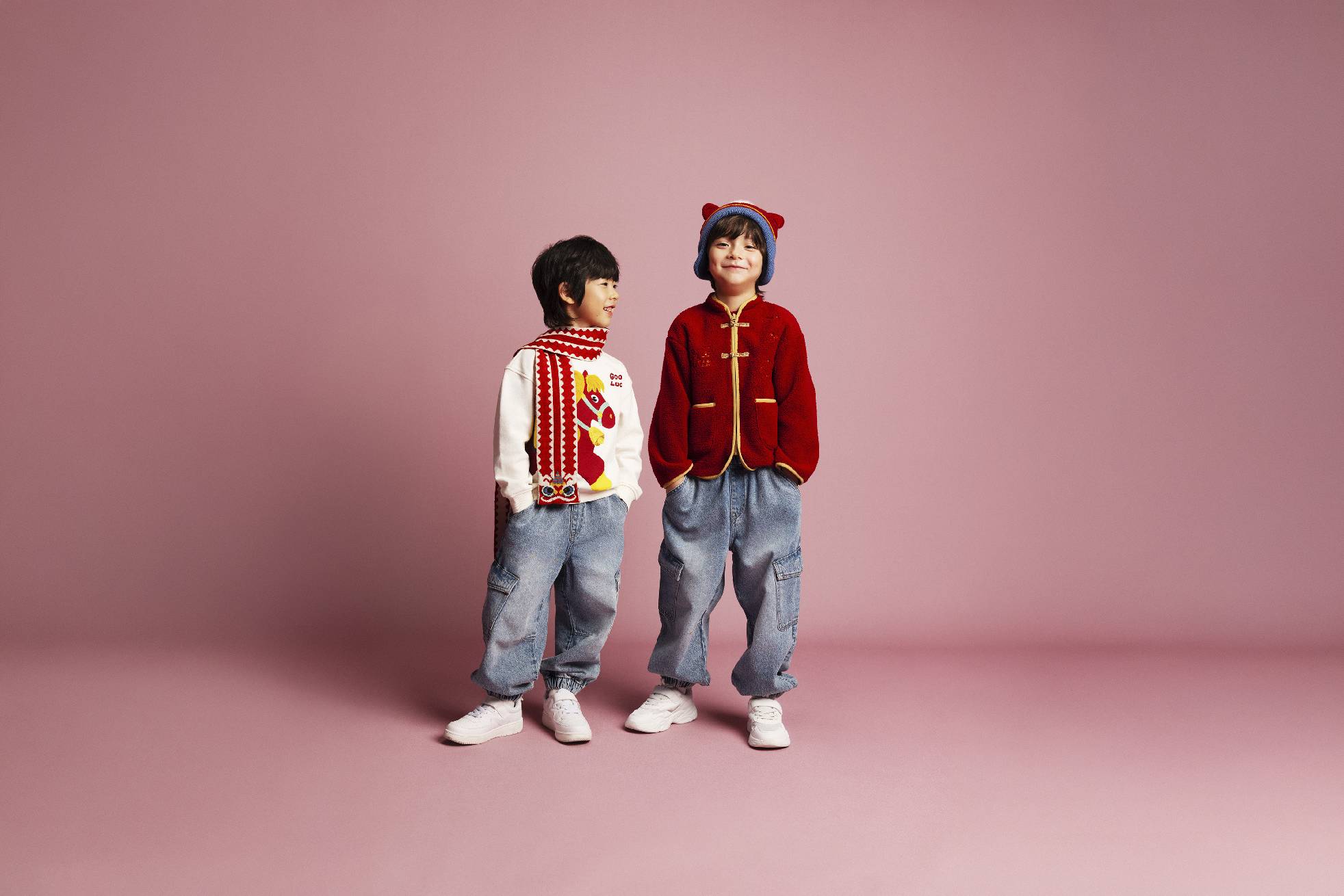 童趣笔触勾勒欢庆氛围,H&M 2026新春童装系列为孩童打造充满朝气的节日新装。女童系列以甜美手绘小马搭配糖葫芦、元宝与蝴蝶结等吉祥元素碰撞俏皮氛围。印花绗棉夹克温暖包裹新春气息,扭花针织与荷叶领元素更显娇俏可爱。男童系列以小马、柿子、鞭炮、元宝等图案为套头毛衣、卫衣等基础单品增添盎然趣味。烫金工艺与金色纱线与系列鲜活的亮红主色辉映节日华彩,单品兼具舒适实穿的同时,为造型更添蓬勃新趣。