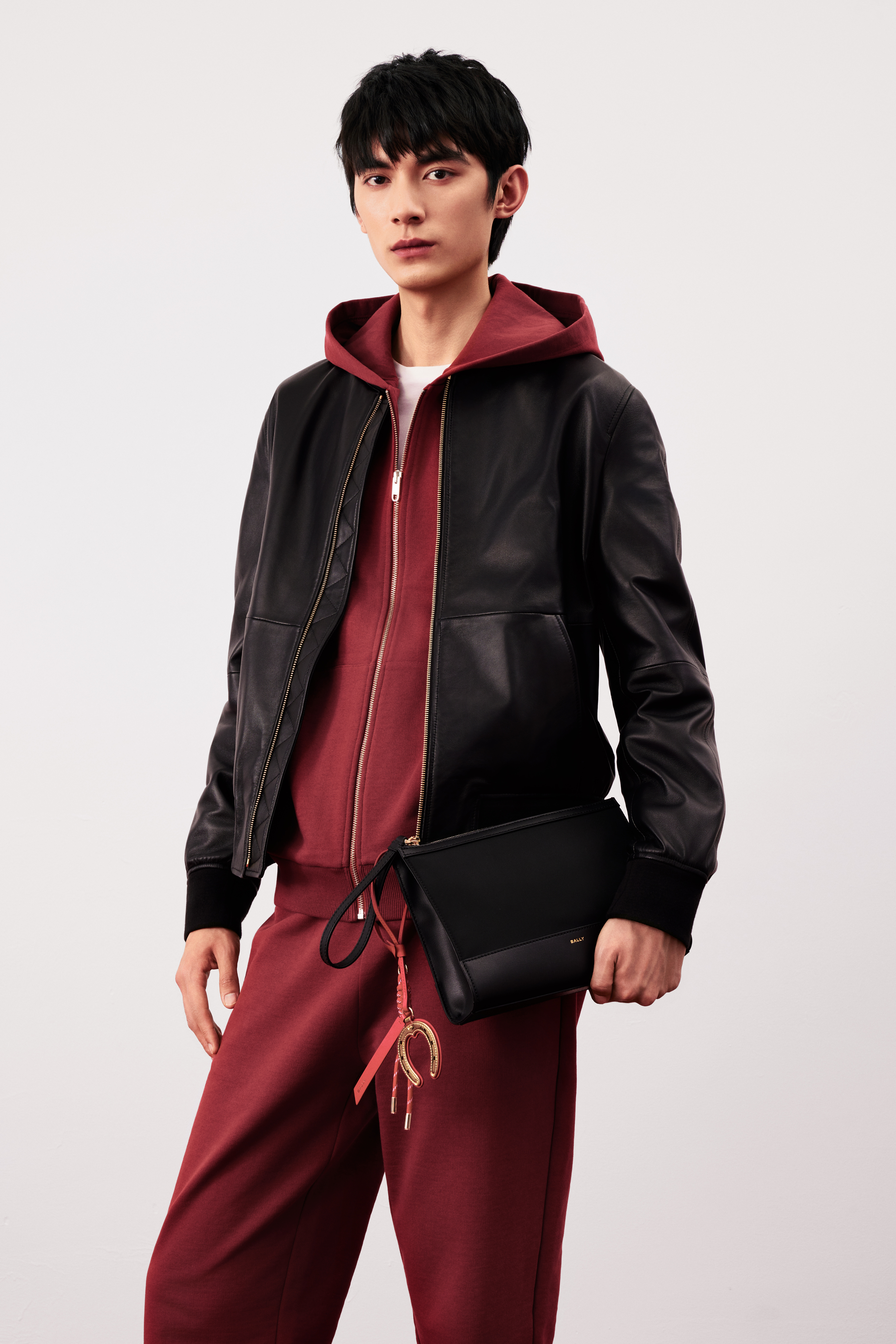 该系列甄选上乘材质,诠释都市运动休闲格调。其中,经典男士黑色皮衣以柔软纳帕皮革精心剪裁,红色内里呼应新春吉庆,衣身点缀以金线绣饰的Bally马蹄扣标识;另一款廓形男士皮衣则饰有金色Bally字母标识,并且可以双面穿着,小羊皮与环保尼龙材质随性切换造型,立领则以小羊皮衔缝精制,更显示出百年皮具世家的匠心独具。 连帽运动套装采用质感丰盈的美利奴羊毛织就,触感细腻,温煦宜人。而情侣款Lift运动鞋以小牛皮精心打造,鞋面缀以黑白条纹标识,分别以简约的金、银两色镶边;Easy迷你托特包选用Bally经典红配色与光滑牛皮革精制,搭配灵动马蹄扣挂饰,简约中蕴藏祥瑞寓意。男士Cross斜挎包与Clutch手拿包以黑金配色相映成辉,于新春时节展现低调雅致的型格。棉质T恤与挺阔 Polo 衫均饰以马蹄扣刺绣标识,搭配特别印有别致马头肖像图案的情侣款双色羊毛围巾,相辅相成间点亮节日穿搭氛围。