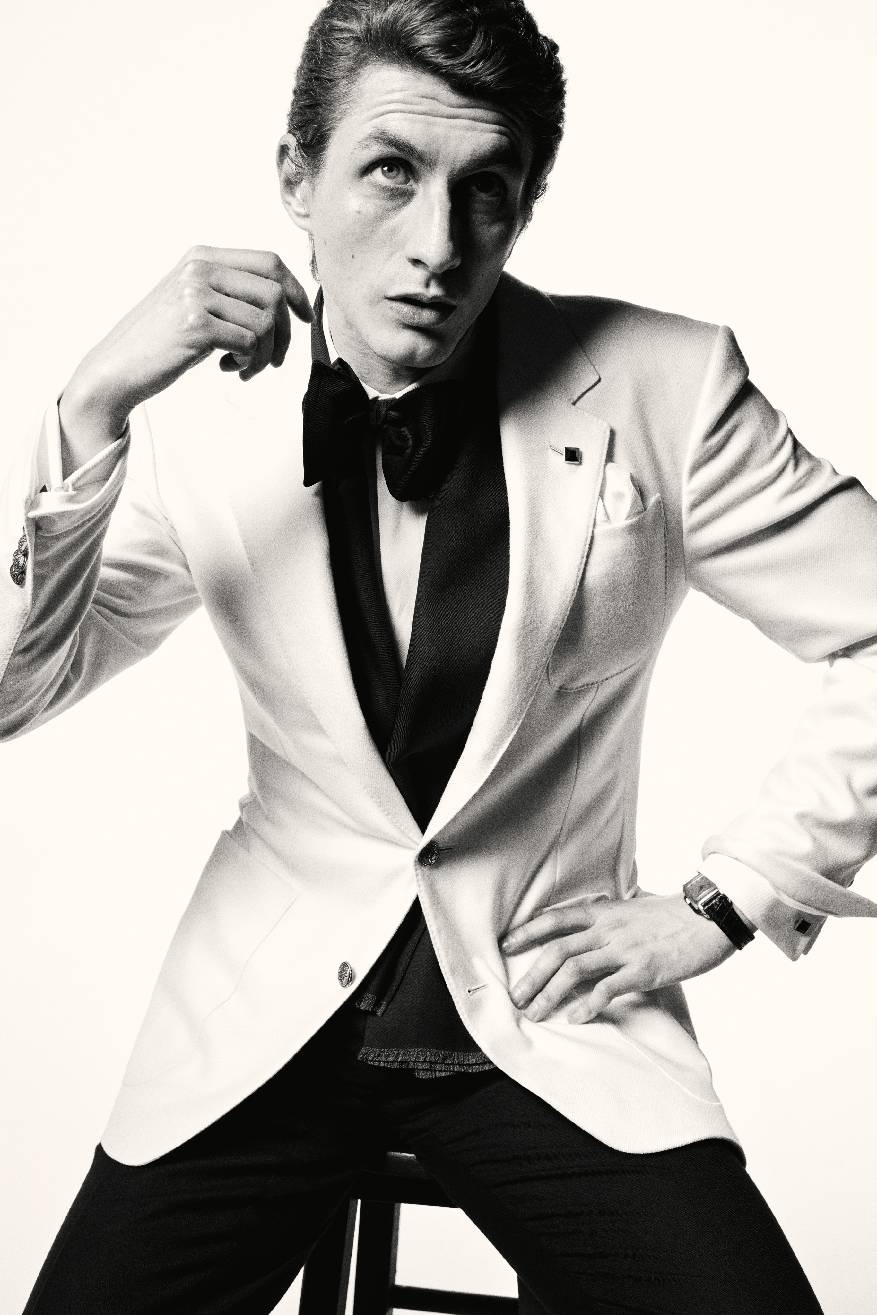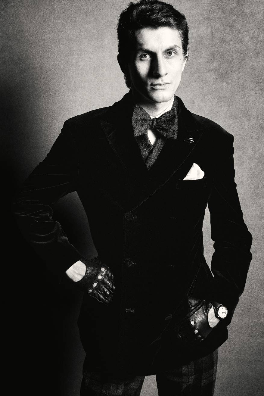 色调渐深之际,张扬纹理为服饰廓形赋予张力。夸张纹理的羊绒或驼绒粗花呢西装外套,缀以皮质滚边,内搭翻领羊绒衫,下承马裤呢长裤,抑或以出人意料的仿麂皮或小羊皮五袋长裤统一整体风格。作为点睛之笔,皮革驾乘手套既是品牌标志性单品,更是对伯爵快意人生的写照。