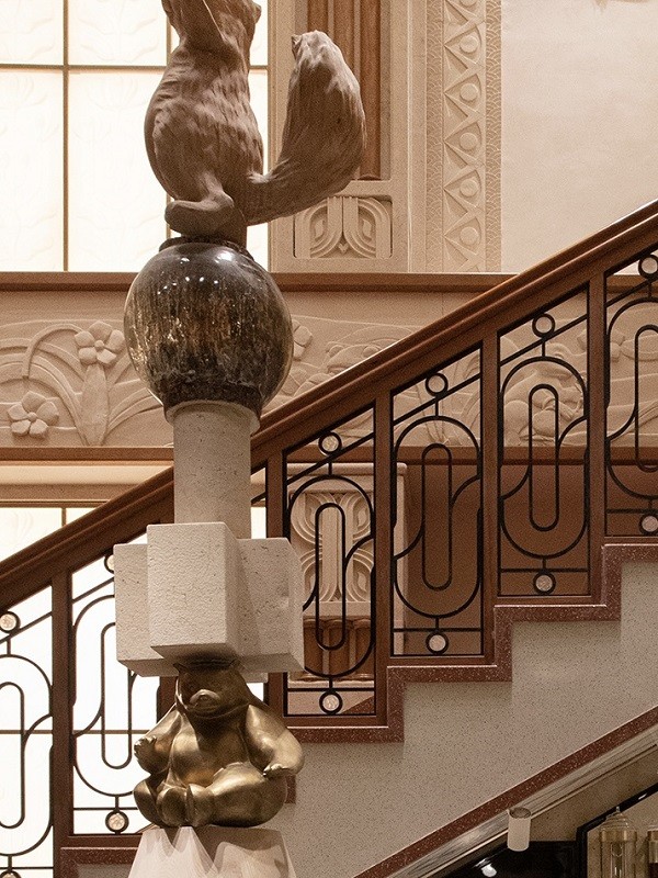 此番启程,融入海派文化与 Art Deco装饰艺术的风格神韵织入一幅全新感官长卷。由此起笔,重重细节于空间中次第铺开:与青年雕塑家杨怡合作打造大型浮雕作品,使楼梯化作 “一步一景”的行进式当代艺术。