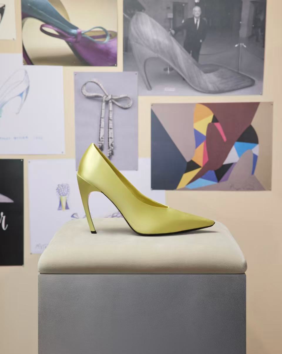 ROGER VIVIER 构想于 1959 年的Choc内弯跟携颠覆锋芒问世,曾在初现时即惊艳世人。内拱造型、雕塑形态与建筑轮廓别出心裁,弧形线条与利落边缘挑战传统范式。其矛盾之处源于视觉上的失稳感:内弯曲线营造失衡错觉,然而在结构层面却能提供非凡支撑。这般感知与现实之间的张力,生动映现当代女性气质:外在纤秀柔婉,内在坚若磐石。此间的性感并非柔弱,而是结构与掌控。