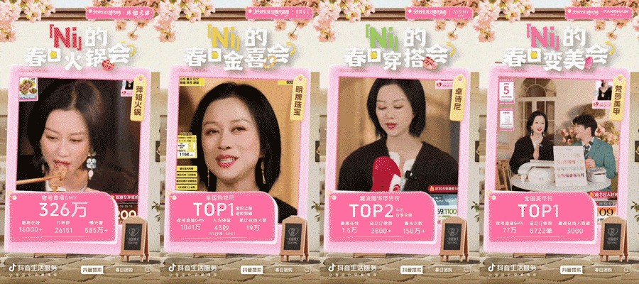而这份春日逛玩指南,从未止步于镜头。活动期间,「Ni」的春日欢迎会主题直播间,倪虹洁空降萍姐火锅、明牌珠宝、卓诗尼、梵莎美甲四大品牌直播间,将视频里的春日美好,转化为触手可及的团购福利。没有生硬的叫卖,只有轻松的“和女神一起逛春天”的云陪伴,她和观众聊春日穿搭、变美心得、探店趣事,把好物搬进直播间,让大家从屏幕前的「看春景、品春意」,自然衔接至「囤春物、享春光」的春日消费,让镜头里的春日美好,真正成为手可触及的日常。