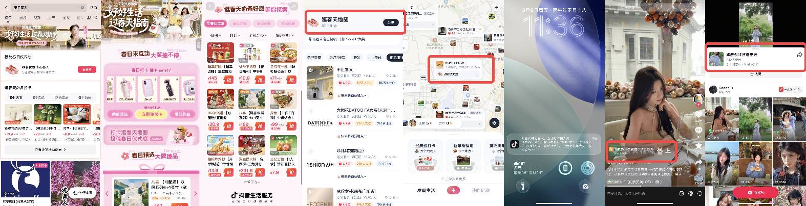 为了让线下逛春更有仪式感,抖音上线「逛春天足迹地图」,为春日打卡量身定制美好路线。用户只需跟着地图标注的春日打卡点奔赴春光,解锁全城的春日好去处。分享打卡视频或图文,还能参与抽奖,获得惊喜礼品,让每一次出门逛春,都多了一份期待。当无数个“我的春天”被镜头记录、被上传分享,这场春日打卡之旅便不再只是一个人的闲逛,而成了一群人的春日共创。