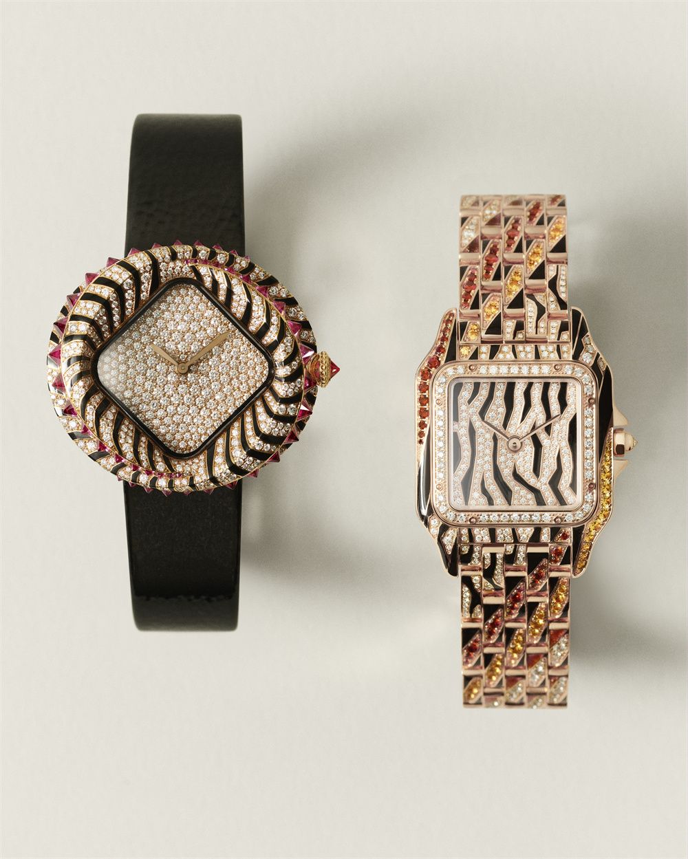 从一开始,标志性猎豹便在卡地亚构建的动物王国中悠然穿行。在这里,野性的自然最为珍贵:老虎徜徉或蜷卧,长颈鹿注目远方,蛇优雅地潜伏,静待出击。