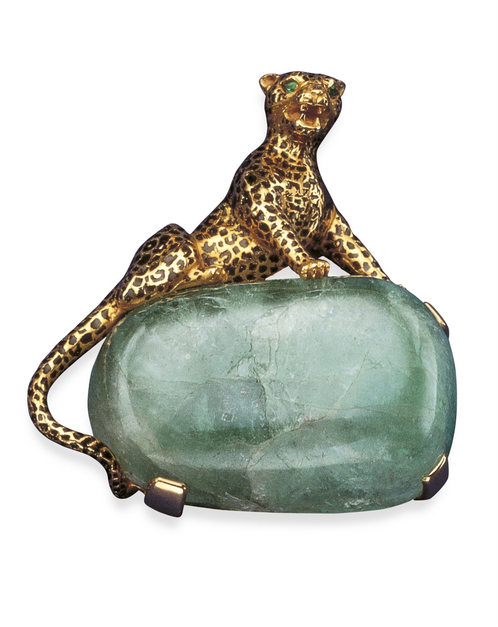 1948年,猎豹以全新的立体造型出现在一系列作品中,生动演绎迷人魅力。她气势凛然,傲踞于珍贵的中央宝石之上。