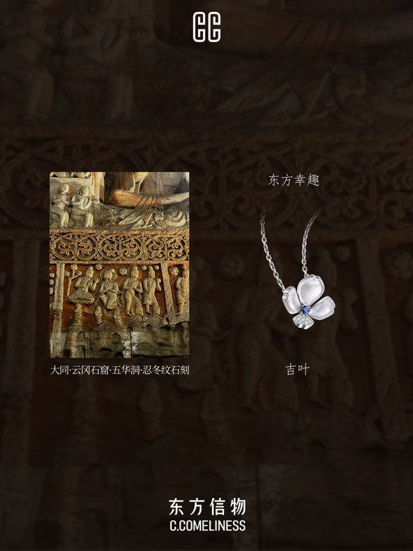 当一位女性把「吉叶」戴在胸前,她佩戴的不只是一枚吊坠。她佩戴的是云冈石窟那朵开了一千五百年的莲花,是北魏工匠刻下最后一刀时的呼吸,是千年间无数仰望者的目光。这朵花,从石壁上流下来,从北魏的春天里走出来,落在她的颈间。它不再是北魏工匠的那朵花,而成了她的花。
