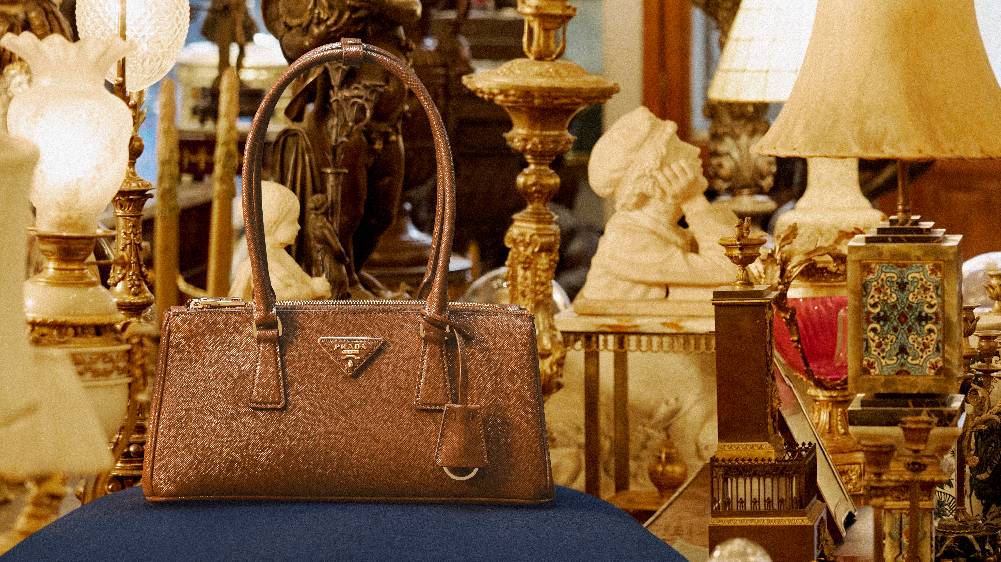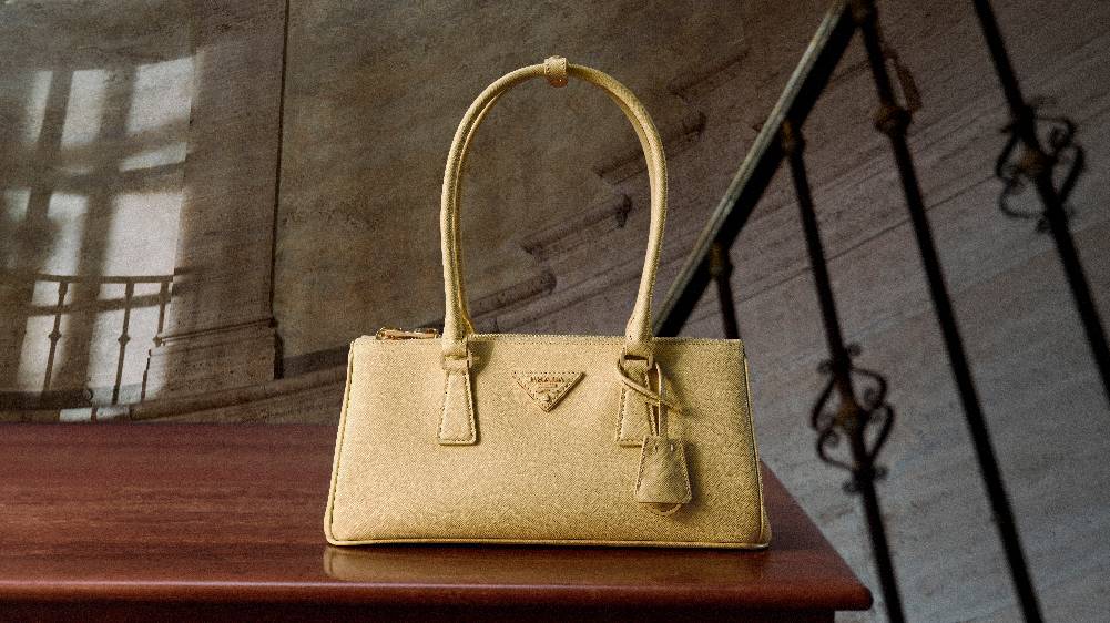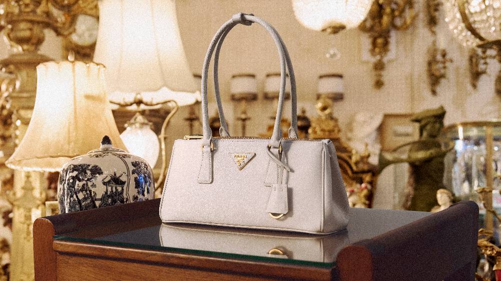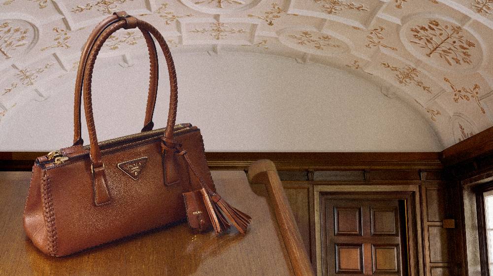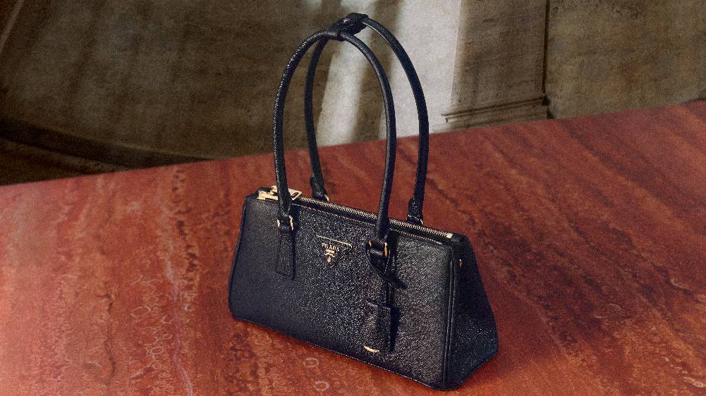 Galleria手袋灵感源自20世纪中叶经典结构式手袋,其直线廓形、顶部提手与简约造型皆为Prada设计语言的标志性元素。廓形兼具精致美感与实用功能:内部设有三个平行隔层,两个配以拉链,另有一个口袋隐藏于深处。该作品彰显着品牌在奢华皮具领域的卓越技艺与百年造诣——它由83个独立部件组成,辅以手工涂饰并抛光的皮革包边,搭载象征至臻品质的Prada标志性三角徽标。手袋最初采用Saffiano皮革打造,Mario Prada为其申请了皮革工艺专利,至今仍是品牌的经典材质。