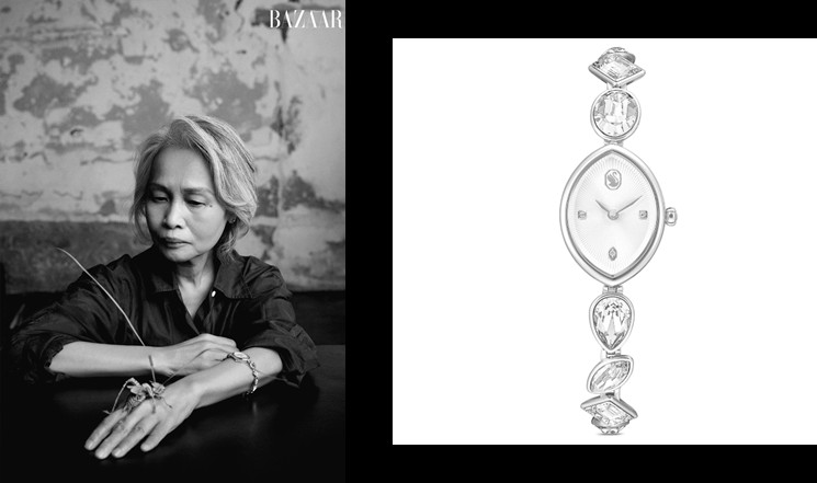 施华洛世奇2026年春夏系列产品登上时尚芭莎,这款Gema系列腕表以具吸引力的造型碰撞为设计亮点。杏仁形表壳采用不锈钢材质,表盘饰有扭索饰纹,搭配三颗仿水晶刻度与经典的天鹅标识,为造型增加灵动几何光彩。