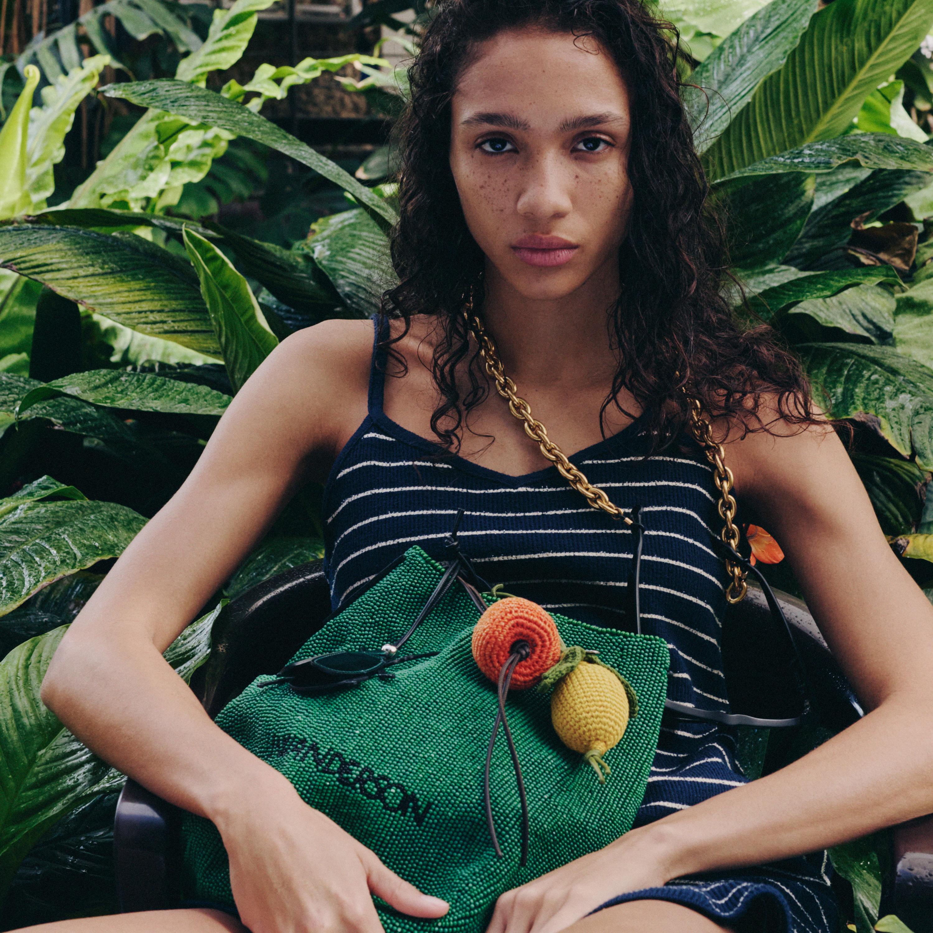 标志性Loafer Bag 以受传统篮编工艺启发的编织结构焕新呈现,每一件均为手工编织,这一复杂技艺亦呼应贯穿全系列的制作过程与工艺内核。季节限定挂饰为系列增添趣味层次,涵盖皮革与钩织两种形式。手工钩织的水果与蔬菜造型,包括柠檬、柿子、西兰花与大黄挂饰,以及作为零售款限定推出的变色龙挂饰,细节刻画尤为精致,均采用意大利丝光棉手工钩织而成。皮革挂饰则延续另一种工艺表达:英国蓝铃花造型以光滑皮革呈现,与虹彩甲虫与爱尔兰雪花莲造型相呼应,搭配可连接钥匙的开口环设计。所有挂饰均附有皮质绳带,可系于包袋之上。
