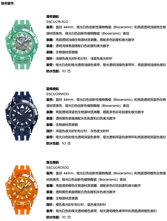 与该系列其他表款一致,全新推出的腕表表冠位于 10 点钟位置,不仅提升安全性,更展现别具一格的标志性造型。配备彩色透明表盘和 44 亳米表壳,结合夜光细节,确保腕表在任何环境下都清晰易读。该系列腕表更具备高达 10 巴的坚韧防水性能,传承瑞士斯沃琪 SCUBA 系列腕表的精髓。