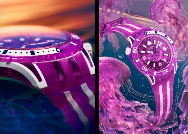 该系列全新升级的潜水风格腕表以迷人的水母世界为灵感,专为海底和水上探险而设计,表壳结合创新性植物陶瓷 (Bioceramic) 和生物源材质打造而成,与俏皮缤纷的色彩相得益彰。