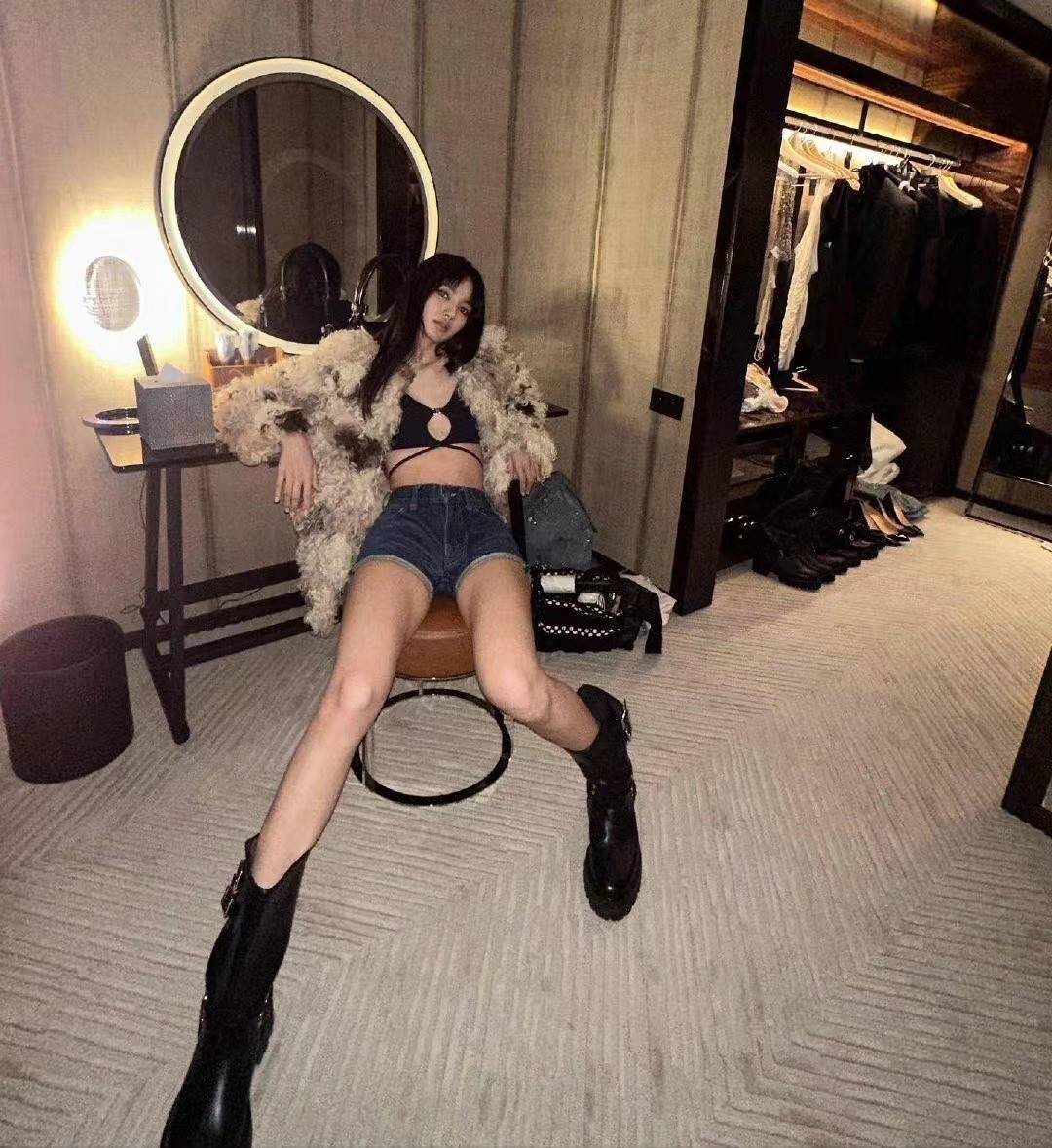 Lisa上演皮草诱惑,性感的比基尼内搭和热辣大长腿,谁看了不迷糊。