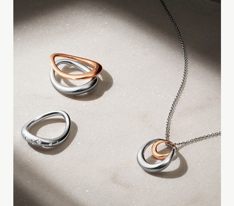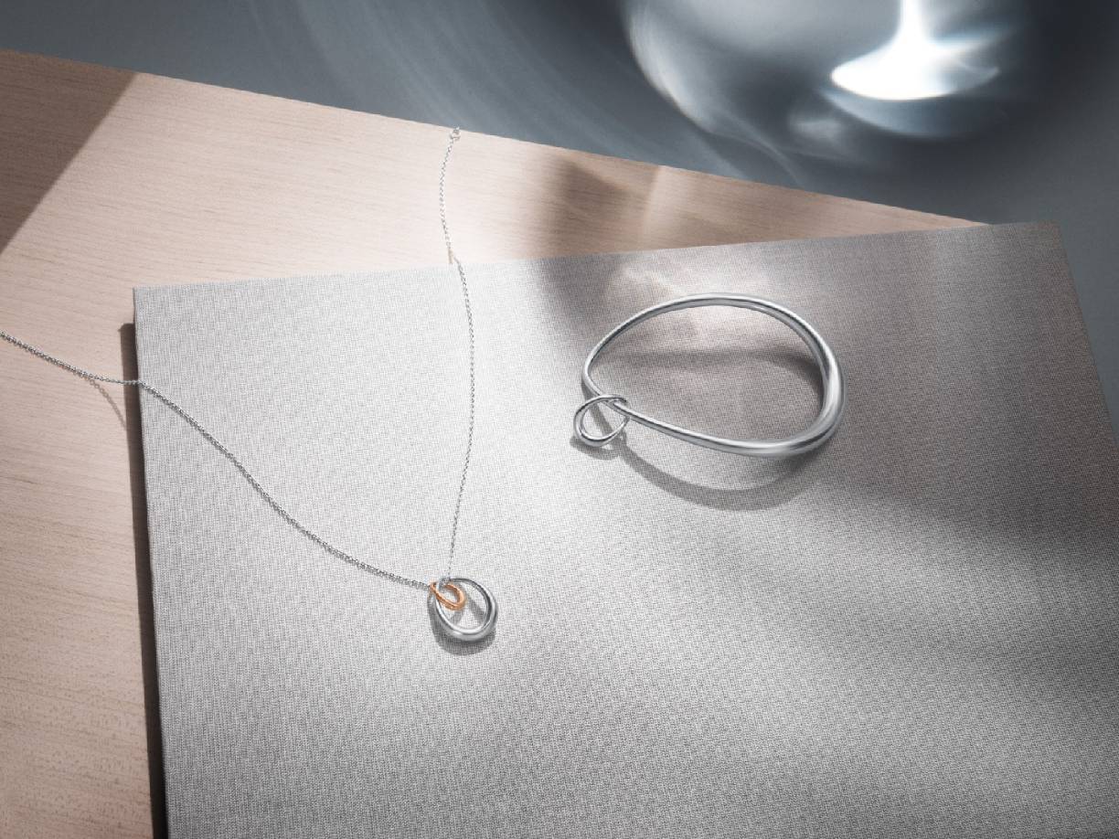 百年丹麦皇室御用银艺品牌GEORG JENSEN(乔治·杰生)与设计师Jacqueline Rabun携手,将爱的精神集结成充满诗意风采的OFFSPRING系列。两环有机线条相连而成,悬挂在精细的链条上,采用双互锁的外形设计,较小互锁受到较大互锁的保护,明确展现了互相依赖的强大力量。