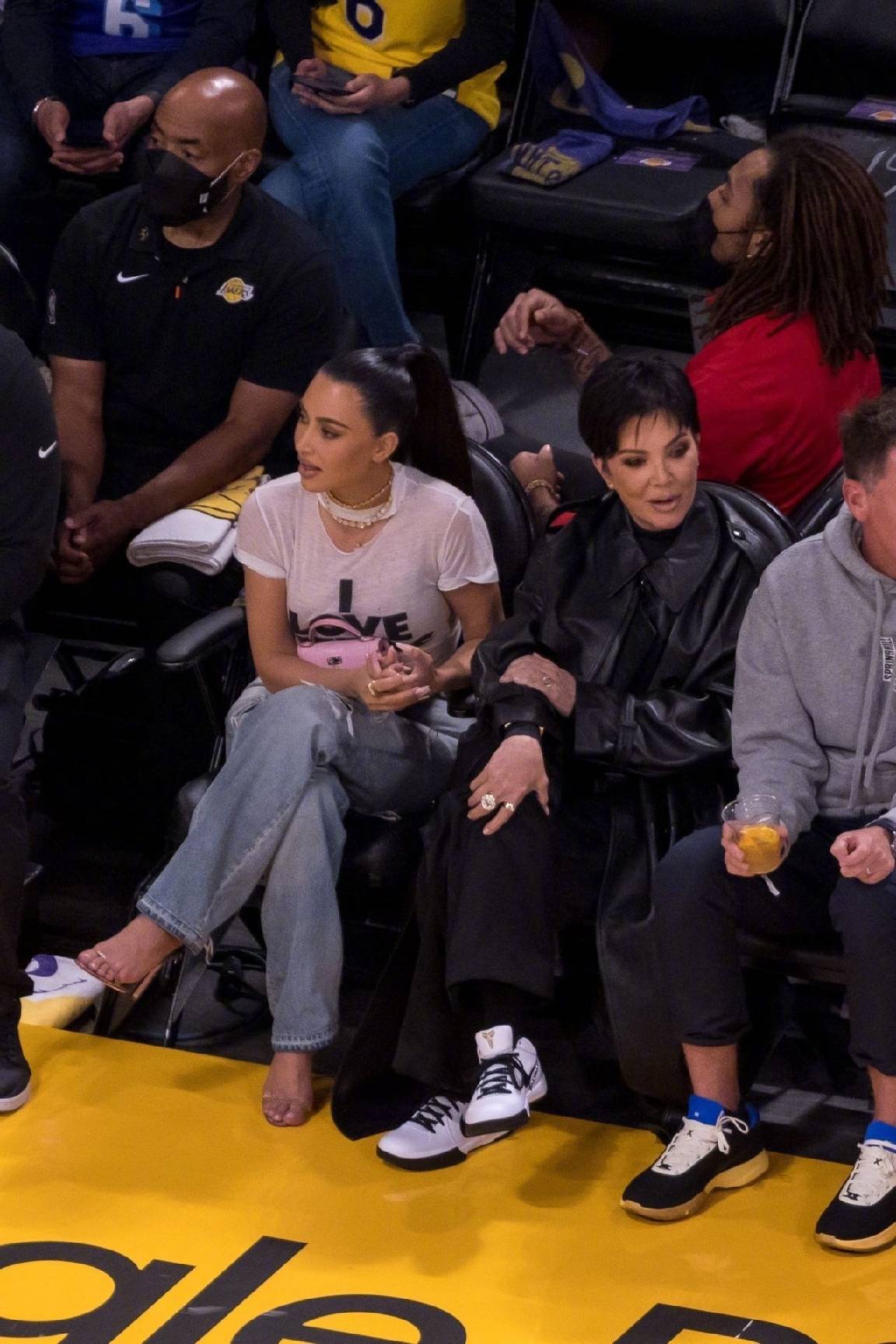 Kim Kardashian和妈妈Kris Jenner现身观看洛杉矶湖人队的比赛,两圈黄钻项链以及鳄鱼皮爱马仕迷你凯莉包的装备当真是“豪气冲天”。
