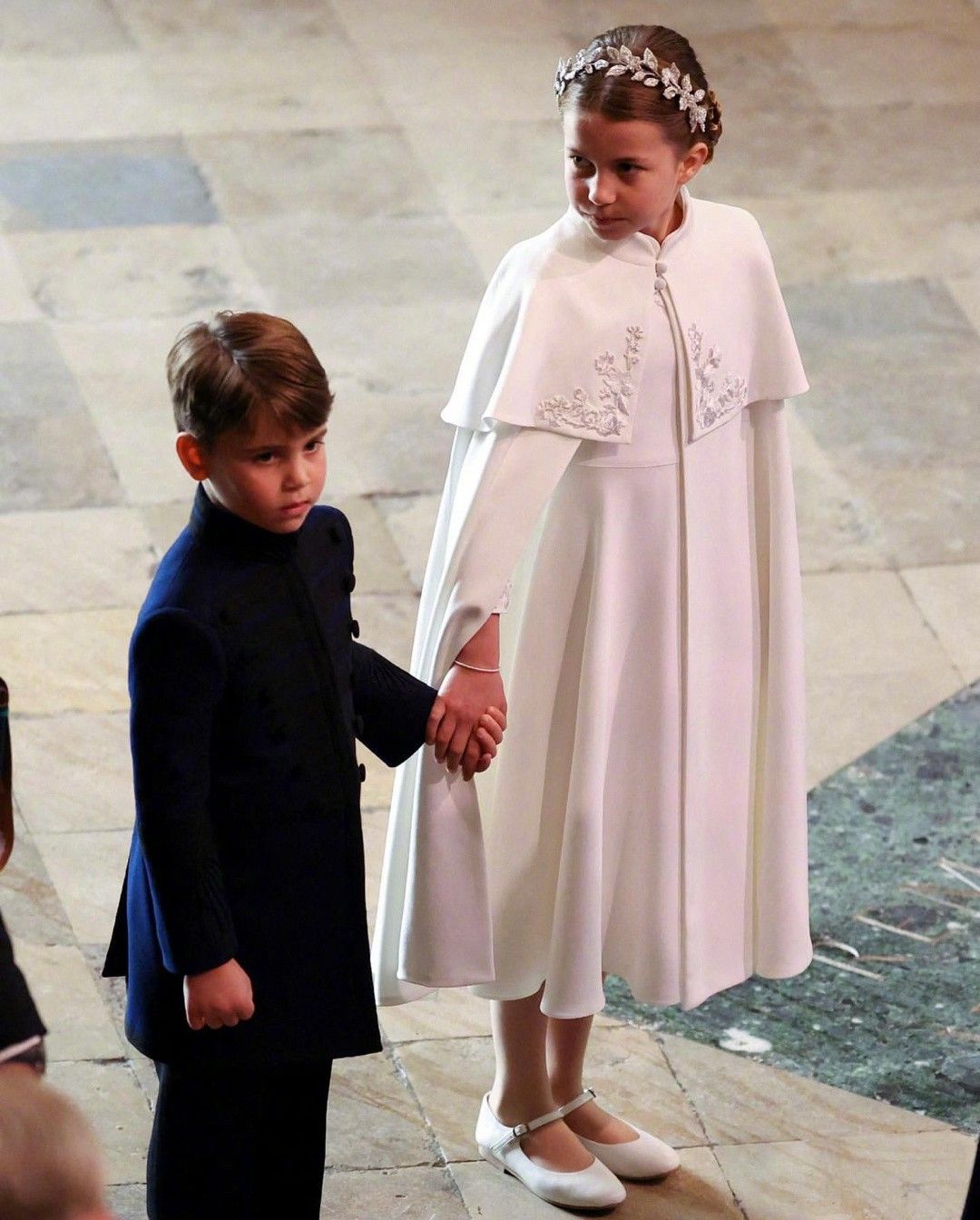 弟弟路易调皮捣蛋,哥哥乔治则担任“提袍侍童”。提袍侍童通常只在英国的正式场合中出现,由12至15岁的王室或贵族青少年成员担任。