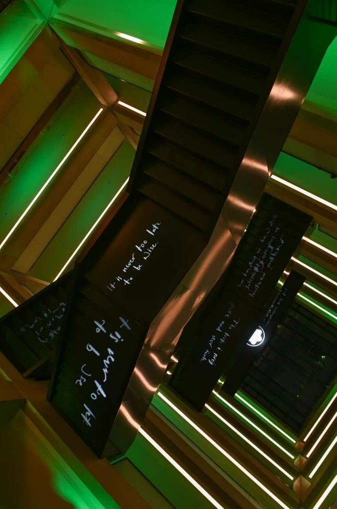 为庆祝万宝龙2023整合市场营销企划开启第二篇章,品牌特别于英国伦敦的拉姆利图书馆(The Lumley Library)举行盛大线下活动。歌手兼模特Karen Elson、演员Suki Waterhouse、作家兼导演Will Sharpe等嘉宾出席了该场活动,与万宝龙全球首席执行官 Nicolas Baretzki 、全球艺术创意总监 Marco Tomasetta 一同置身于珍本古籍的海洋中,感受着智慧的光芒和魅力,共度美妙夜晚。活动现场没有设置传统红毯,而是别出心裁地布置了一个折纸造型的书墙,令活动嘉宾尽展别样的优雅姿态。为了彰显根植于万宝龙品牌深处的书写文化,珍贵书法墨迹被现场投影到建筑的黑色楼梯上,呈现出一场视觉与文化交融的盛宴。