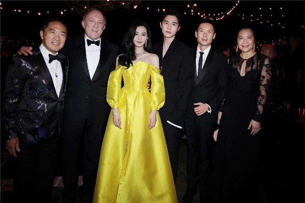 左起:Qeelin创始人暨创意总监Dennis Chan、开云集团董事会主席兼首席执行官弗朗索瓦-亨利·皮诺(François-Henri Pinault)、Qeelin品牌代言人刘诗诗、Qeelin品牌代言人刘昊然、导演陈哲艺、开云集团大中华区总裁蔡金青