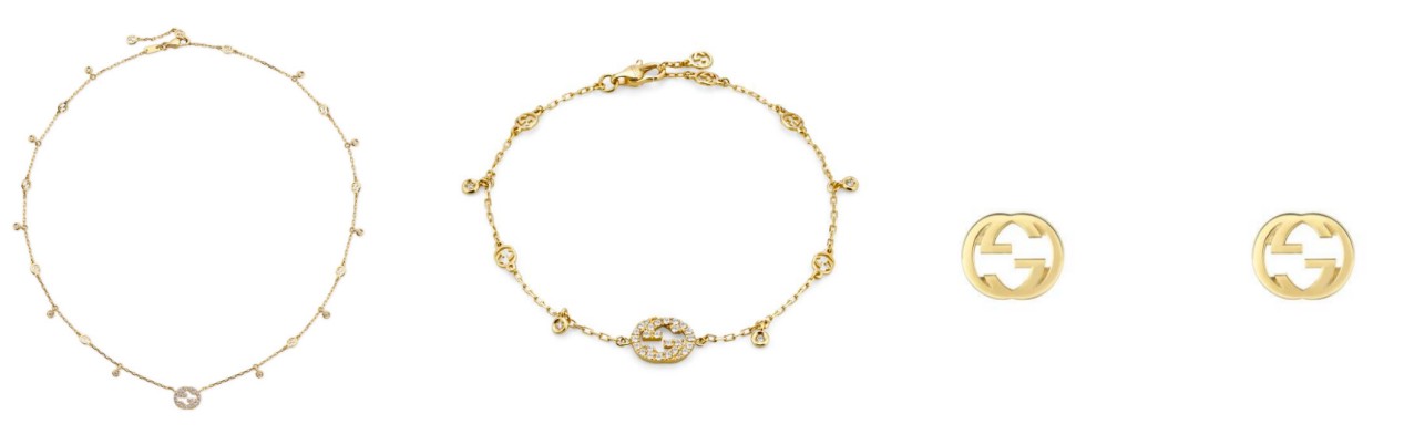 将“互扣式双G”标识应用于珠宝作品的设计中,Interlocking G珠宝系列就此诞生。由18K黄金打造的项链和手链以钻石点缀,增添璀璨的优雅质感。同样为18K黄金材质的耳钉则素雅百搭,展现出这一系列经典且多元的时尚属性。