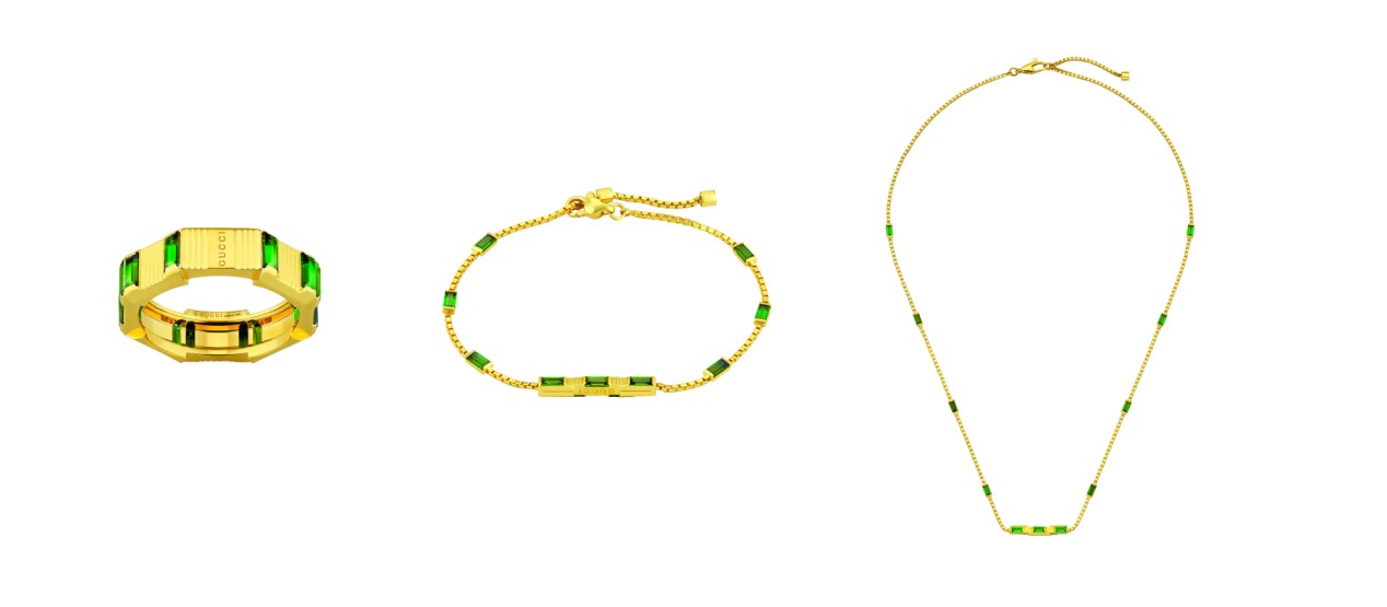 以极简的设计理念出发,18K黄金镶嵌绿碧玺打造的戒指、手链和项链,成就自由叠戴的多重组合,凸显个性魅力,时刻渲染浪漫情怀。