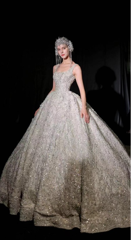 WEIMIYANG2024 春夏高级定制系列在设计上保留婚纱礼服复古而庄重的气息,同时汲取广阔大自然的元素,每一处线条都透露着优雅的贵气。它们不仅是一件婚纱礼服,更是一件跨越时空的艺术品,它承载了文化与时光的流转,也融合了现代设计的高级感