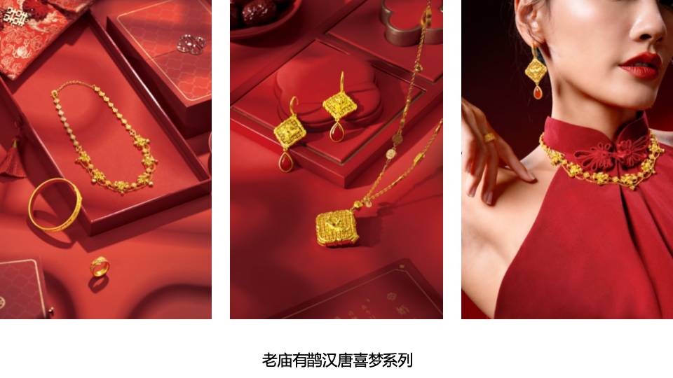 在这个国潮文化崛起的时代,对于Z世代而言,无论是婚礼场景搭配、婚前策划准备、或是日常的穿搭风格,都越来越趋向于蕴含国风设计元素的新中式风格取向,诠释文化自信的国潮风尚。老庙有鹊将东方浪漫刻进婚嫁黄金,以中国喜事意蕴融汇现代设计理念,诠释新中式婚嫁的婉约沉淀之美。更以轻盈年轻却显别致珍贵的设计语言,打破传统婚嫁金饰的印象,赋予日常时尚的穿戴灵感。碰撞出属于年轻一代的新喜“饰”,启幕金秋的浓情意境。