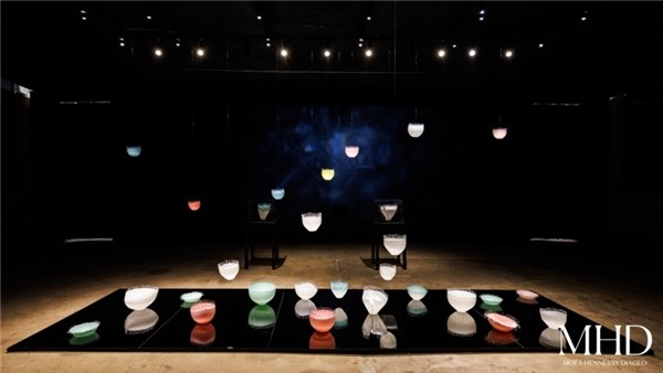 在自然界中,水沁润着土壤、滋养着万物,是生命的本源,万物归土又蓄养和净化着水,在时间里相互共生。近年来,人类的生活方式对水和土壤的污染愈发严重,甚至到了不可逆的地步。藉由青年陶艺家卞晓东独特的艺术形式叙事与充满张力的作品《淼》,最终精彩呈现「水之复苏」展区,此动彼应,激发观众对土壤和水共生问题的关注和思考。作品《淼》使用最纯净的泥土塑造出一组最纯净的水滴,对水滴本身的关注亦与酩悦轩尼诗的葡萄园100%精准滴灌的举措有相似之处,借此让观展者更直观地感受到MHD中国在生态可持续发展上的实践。