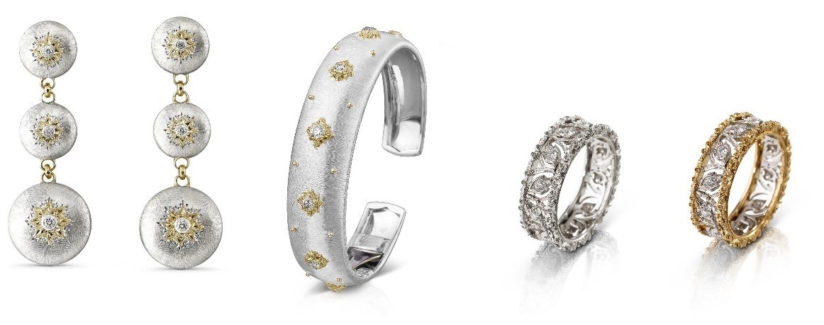 源自于意大利米兰的布契拉提(Buccellati),是世界上最负盛名的高级珠宝商之一,以其手工技艺、精湛设计和独一无二的作品闻名世界。布契拉提大胆运用色彩独特的珍稀宝石,搭配雕刻如蕾丝般精致的白金和黄金。直至今日,布契拉提珠宝不仅仅因其设计和卓越手工技艺获得全世界的青睐,更值一提的是工坊坚持采用能够追溯至意大利文艺复兴时期的标志性雕刻技术。所有系列的造型灵感均源自历史上的手绘图稿和创始人Mario Buccellati的设计。布契拉提现属历峰集团旗下,由布契拉提家族成员共同参与管理。目前,布契拉提精品店遍布全球各大都市的奢侈品购物中心。
