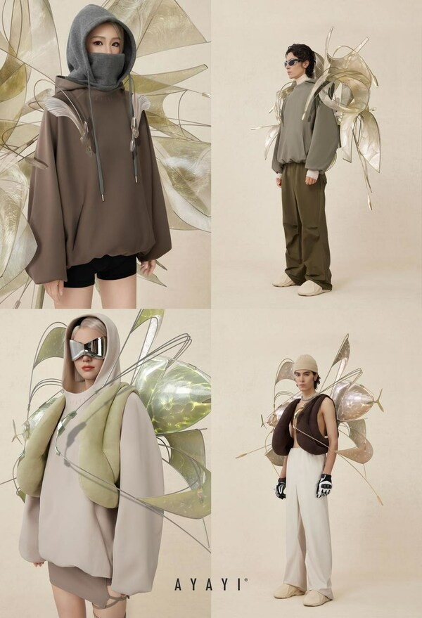 AYAYI®通过每件作品打破常规的设计和匠心工艺细节传达PHYGITAL的视觉意象与精神文化。AYAYI® 1st collection致力于连接视觉与实感,以「链接的冒险家」为主要中心思想,选取「翼装飞行」的视觉特点元素,旨在激发青年人内心梦想与现实之间的对话,鼓励青年人探索自我,勇敢追求心中所想。