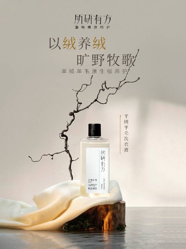 冬日严寒,与羊绒羊毛衣物相伴,方能拥裹惬意,温暖过冬。东方面料精致呵护高端品牌「所研有方」在2023年11月推出全新产品——羊绒羊毛洗衣液,臻选被称为“软黄金”的阿拉善羊绒,从中提取珍稀羊绒蛋白精华液,深达面料纤维进行养护,以绒养绒,为羊绒羊毛织物提供专业呵护,让身体栖息的岛屿与自然同频,绒软蓬松。