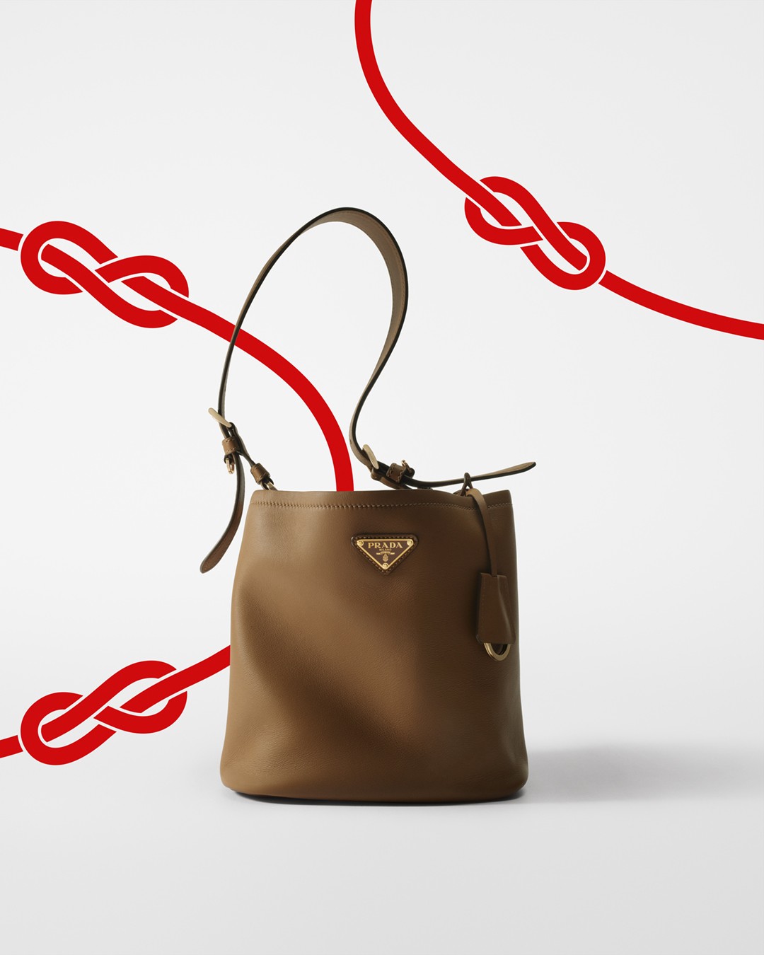 大片发布之际,Prada推出精选成衣与配饰产品。女士单品聚焦手袋:顶部提手式皮革立方手袋配以醒目金色圆环;新款托特包以轻量体积演绎简约美学;肩背手袋巧搭可拆卸挂饰。女装系列中,褶裥半身裙与同风格外套或极简衬衫相得益彰;珍贵面料打造的裙装饰以贴花细节。男士系列推出春节独家款手袋,包身廓形柔和,以别致的深橄榄绿色呈现,搭配宽松大衣、西装夹克与长裤,尽释悠然随性。