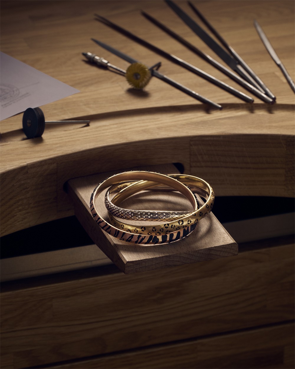 Trinity系列经典之作被不断创新演绎。如今,卡地亚将动物图案融入环圈设计,凸显灵动交织的几何美感。