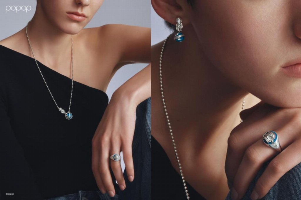 SPACE MOLLY系列推出兼具未来感与故事感的鎏彩地球项链、耳饰及戒指,通过925银的细腻光泽打造神秘星际质感,更结合冷珐琅鎏彩工艺,将SPACE MOLLY太空漫游时看到的璀璨星图就此定格,同时采用了立体浮雕工艺勾勒出经典宇航员肖像与蔚蓝色地球相结合,凸显出SPACE MOLLY对探索宇宙的勇气。