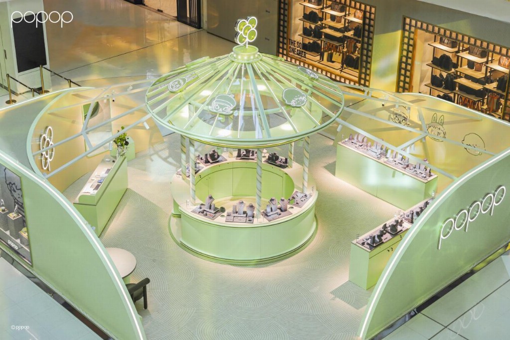 POPOP通过饰物传递无拘无束的生活态度,强调“点亮生活乐趣”的品牌理念。品牌标志性的浅绿色调与四叶花图案,即象征着自然生命力与喜悦的永恒交织。在这次的快闪店中,人气大热的Hirono小野系列、SPACE MOLLY系列、SKULLPANDA系列和FRUITION系列将纷纷回归。